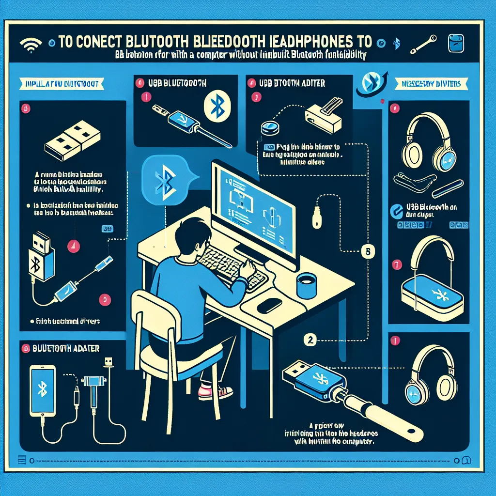 1. **Вопрос:** Как подключить Bluetooth-наушники к компьютеру без встроенного Bluetooth? **Ответ:** Используйте внешний USB Bluetooth-адаптер, который подключается к USB-порту компьютера и обеспечивает поддержку Bluetooth.2. **Вопрос:** Какие шаги нужно выполнить после подключения USB Bluetooth-адаптера? **Ответ:** Установите драйверы, если это необходимо, затем включите Bluetooth на компьютере, активируйте режим сопряжения на наушниках и выполните сопряжение через настройки Bluetooth на компьютере.3. **Вопрос:** Можно ли использовать другие устройства для подключения Bluetooth-наушников к компьютеру без Bluetooth? **Ответ:** Да, можно использовать аудиопередатчик с Bluetooth, который подключается к аудиовыходу компьютера и передает звук на наушники.
